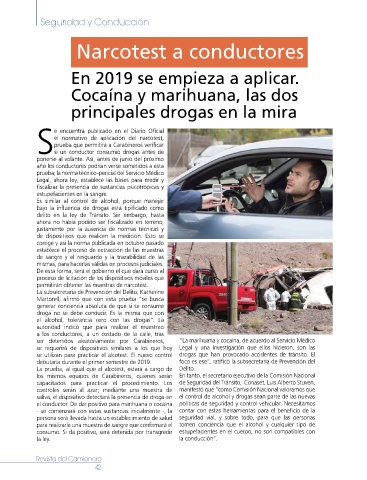 el conductor. De dar positivo para marihuana o cocaína políticas de seguridad y control vehicular. Necesitamos