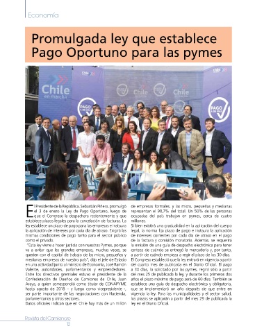 l Presidente de la República, Sebastián Piñera, promulgó de empresas formales, y las micro, pequeñas y medianas