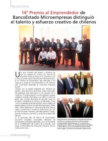 de la Confederación de Dueños de Camiones, Juan de BancoEstado Microempresas. En la ceremonia, el