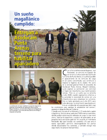 esperado. El presidente de Asoducam Punta Arenas, las condiciones para aprobar la adquisición del terreno”,
