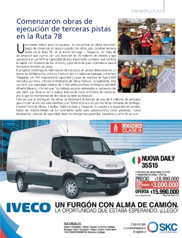 vía tiene una capacidad máxima de 4.400 vehículos/hora. El Ministro del MOP