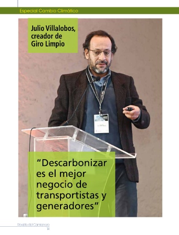 Especial Cambio Climático Julio Villalobos, creador de Giro Limpio “Descarbonizar es el mejor negocio de transportistas y generadores” Revista del Camionero 14