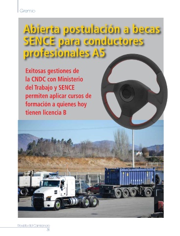 Gremio Abierta postulación a becas SENCE para conductores profesionales A5 Exitosas gestiones de la CNDC con Ministerio del Trabajo y SENCE permiten aplicar cursos de formación a quienes hoy tienen licencia B Revista del Camionero 38