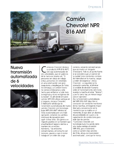 el negocio, destaca Chevrolet. del NPR 816 AMT deja libre al