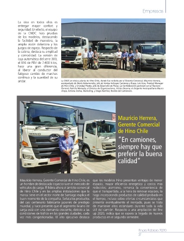 Mauricio Herrera, Gerente Comercial de Hino Chile, es que los modelos Hino presentan ventajas de menor