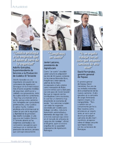 calidad a sus proveedores, entre fue que se negoció con los nuevos camiones. El alto