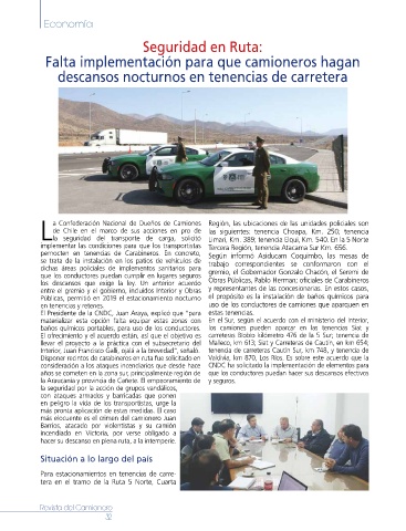 Lla seguridad del transporte de carga, solicitó Limarí, Km. 389; tenencia Elqui, Km. 540. En la 5 Norte