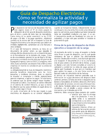 grandes empresas, a agilizar los pagos. De esta forma, información de la guía electrónica de despacho debe