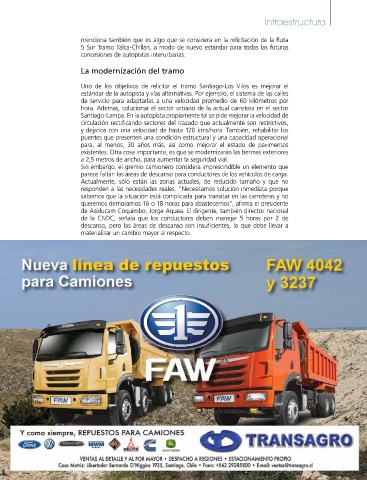 Santiago-Lampa. En la autopista propiamente tal se pide mejorar la velocidad de