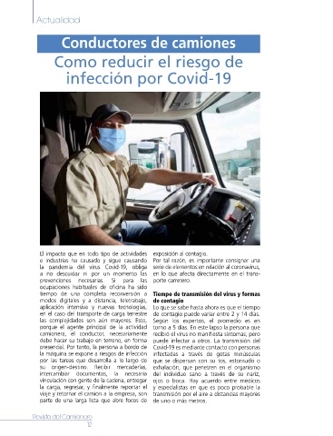 camionera, el conductor, necesariamente recibió el virus no manifiesta síntomas, pero
