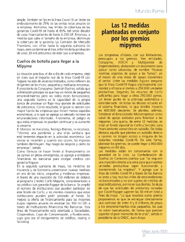 que estas empresas no puedan continuar y se aumente mipymes. Una quinta, de entre 12 medidas, es