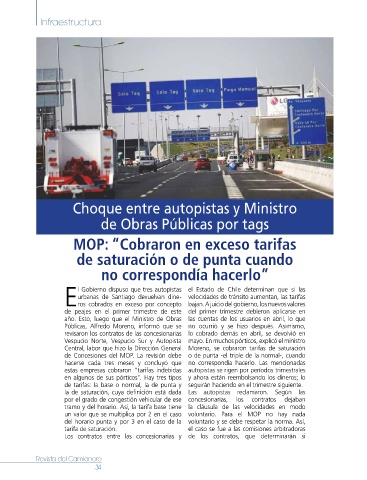 Vespucio Norte, Vespucio Sur y Autopista mayo. En muchos pórticos, explicó el ministro