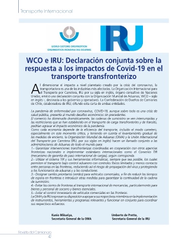 del Transporte por Carretera (IRU, por sus siglas en inglés) hacen un llamado conjunto a las
