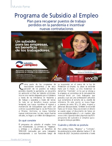 reactivación económica y de recu- Protección al Empleo. Su plazo se extiende