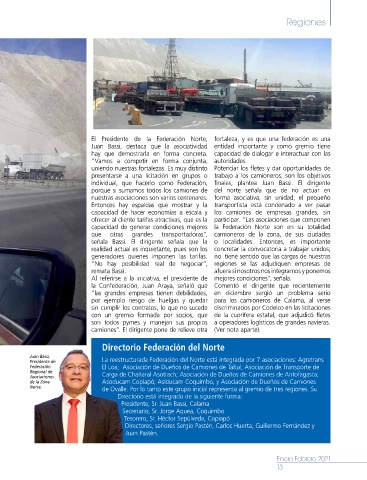 Presidente de La reestructurada Federación del Norte está integrada por 7 asociaciones: Agretrans