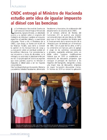 Camiones de Chile entregó al Ministro de departamento de estudios de la CNDC.