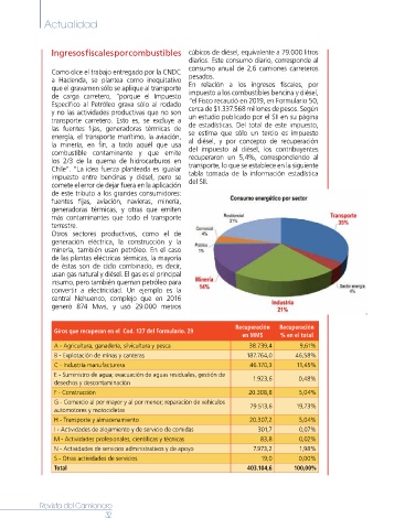la minería, en fin, a todo aquél que usa al diésel, y por concepto de recuperación