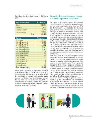 Contribuyentes de renta presunta en Transporte Carencia de incentivos para migrar