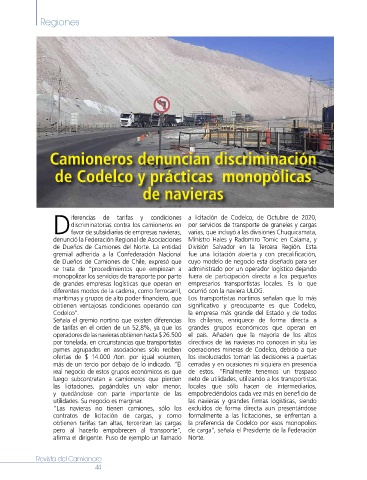 marítimas y grupos de alto poder financiero, que Los transportistas nortinos señalan que lo más
