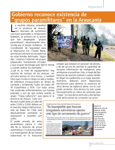 grupo “Franja Lafkenche”, que opera en la “cegar” los Gps de los vehículos y dar tiempo
