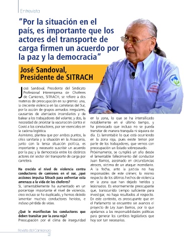 actores del sector del transporte de carga por el lamentable fallecimiento del conductor