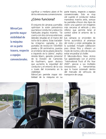MirrorCam permite mayor visi- transporte de carga.