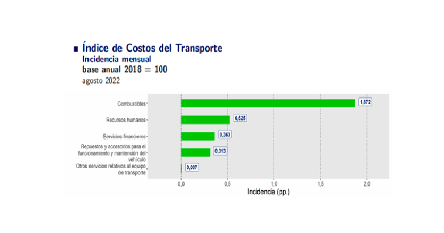 La cifra del Indice de Costos del Transporte, de 3,1 % en agosto, dada a conocer por el Instituto Nacional de Estadísticas, es absolutamente preocupante para toda la industria transportadora, en especial para el sector de cargas terrestres.