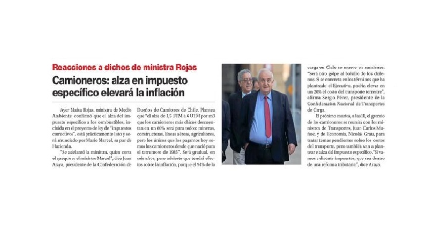 En declaraciones al diario La Segunda el presidente de la Confederación apunta a que el aumento de impuesto al combustible será un fuerte incentivo para la inflación.