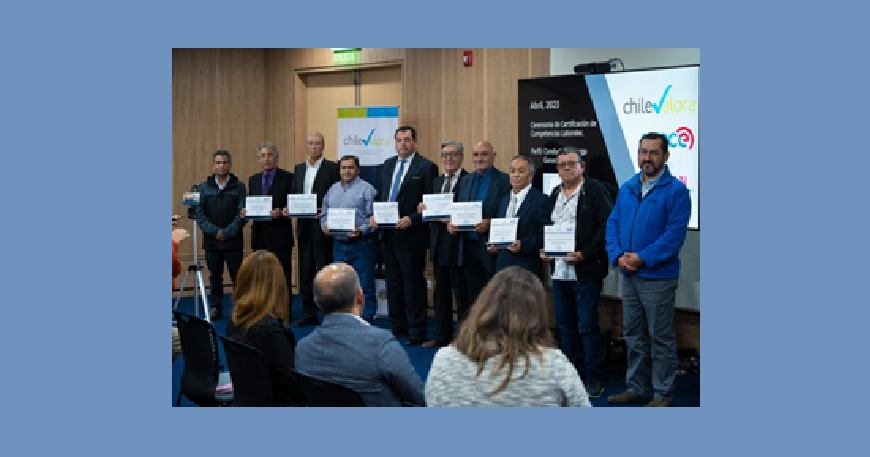 Un grupo de transportistas de San Antonio y La Calera obtuvo sus certificaciones de competencias para el perfil laboral de conductor de carga general, proceso impulsado por ChileValora, el Sence, el Centro de Certificación del Transporte (Ctran) y la Confederación de Dueños de Camiones de Chile.