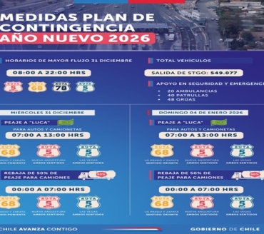 Como se ha hecho habitual en los últimos años con motivo de las salidas masivas de vehículos en fines de semana largos, para Año Nuevo tres carreteras anunciaron rebajas en sus tarifas, que también se aplicarán a camiones. Así lo anunció el Ministerio de Obras Públicas que proyecta que en estos días unos 550 mil vehículos saldrán de la capital.