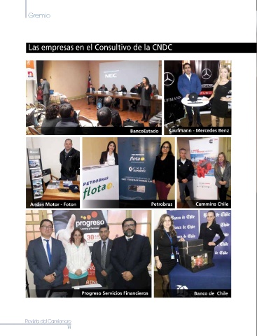 Gremio Las empresas en el Consultivo de la CNDC BancoEstado Kaufmann - Mercedes Benz Andes Motor - Foton Petrobras Cummins Chile Progreso Servicios Financieros Banco de Chile Revista del Camionero 14