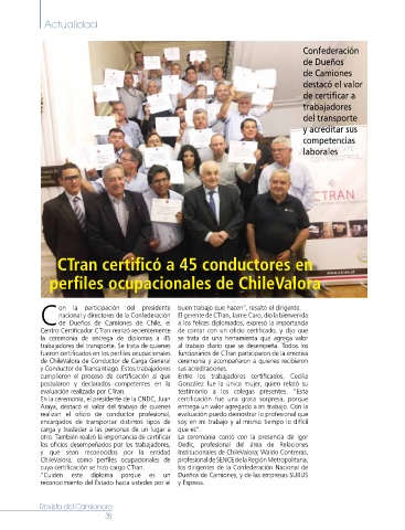 de ChileValora de Conductor de Carga General ceremonia y acompañaron a quienes recibieron