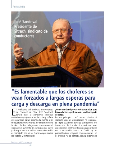 de Choferes de Chile, José Sandoval, los conductores profesionales y del transporte