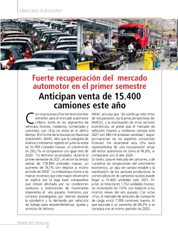 primer semestre de 2021, el sector ha tenido En tanto, para el mercado de camiones, y de