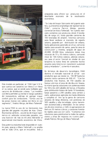 Tatersall cuenta con modelos como el FAW Tattersall en todo Chile”, agrega Patricio Esta potencia industrial está disponible en nues-