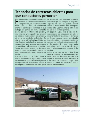 transportistas hagan su descanso nocturno e iluminación. En todo caso, evitar