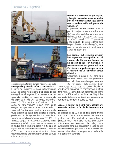 fruta esperen su turno para dirigirse al puerto, La posición de la CLPC es de total apoyo frente