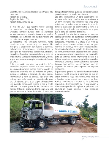Durante 2021 han sido atacados y destruidos 110 transportes carreteros, que usan las vías principales